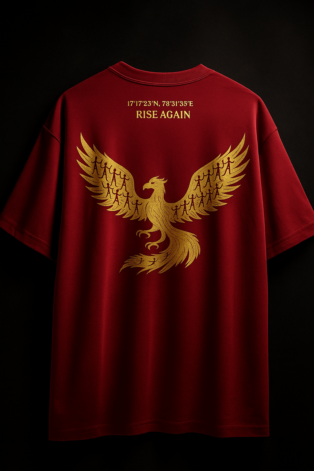 The Punarutthaan Oversized Tee is a symbol of revival—crafted for those who carry heritage with confidence and ease. Designed in a bold rich red, it radiates passion and strength. The chest is finished with the Indrino logo in metallic gold calligraphy, delivering a statement of cultural pride with a premium edge.