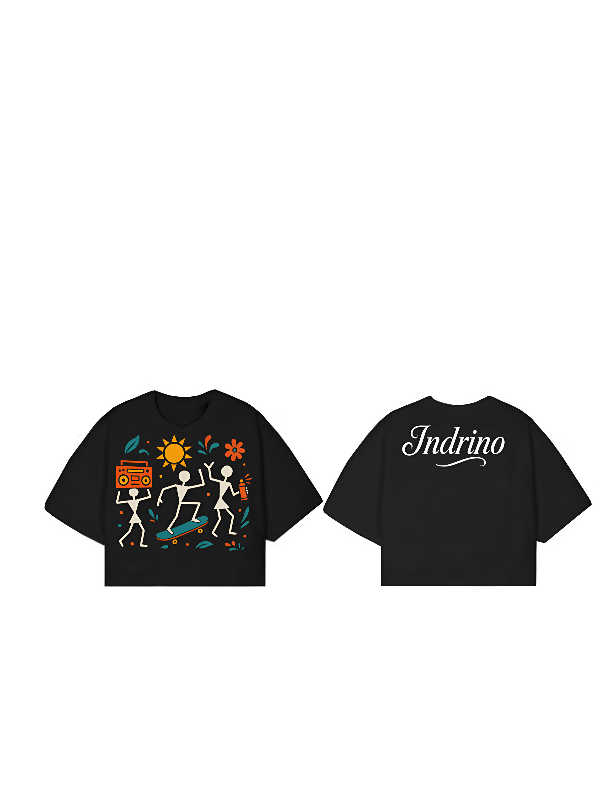 Finished in a sleek cropped fit with the Indrino logo on the back, this piece isn’t just a tee — it’s a statement of heritage fused with streetwear style. Perfect for pairing with joggers, high-waist denims, or layering for an effortless festival or street look.